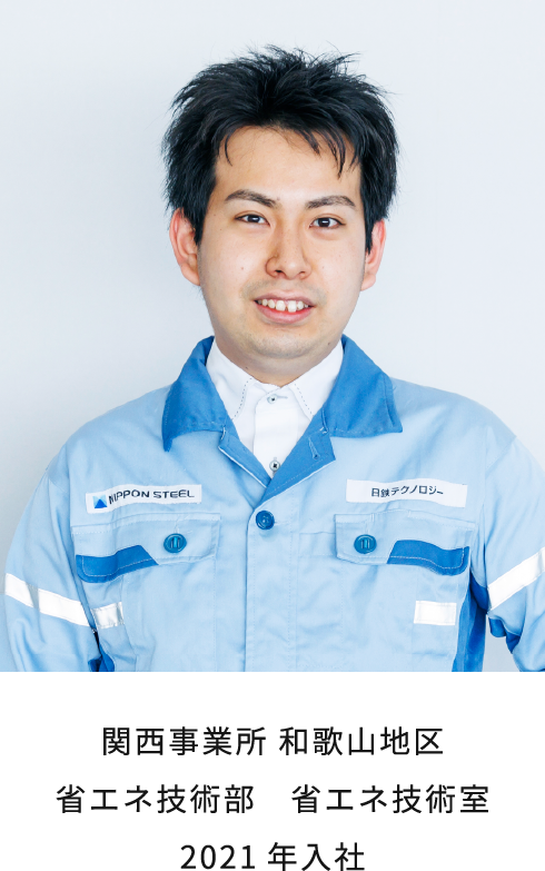- 製鉄所全域の省エネ支援(計測、試験、調査、診断)を行う省エネ技術部 省エネ技術室に在籍しています。仕事を通じて、現場の設備や生産プロセスに携わることができ、日本製鉄の社員の方々と一体となって仕事ができるのが魅力です。日本製鉄とは10日毎程度で業務の進捗と方向性を探る会議を実施し、様々な提案や議論を行い、一体となって仕事をさせていただくことで日々刺激を受けています。現在は先輩のサポートを受け、私が主担当となる案件も任されており、やりがいを感じています。