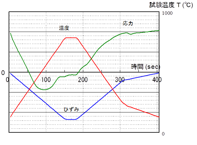 熱疲労試験は、通常の温度一定の低サイクル疲労試験と異なり、温度変化に伴う熱応力負荷を温度サイクルとひずみサイクルの位相(Out-of-phase,In-phase)で試験を行います。