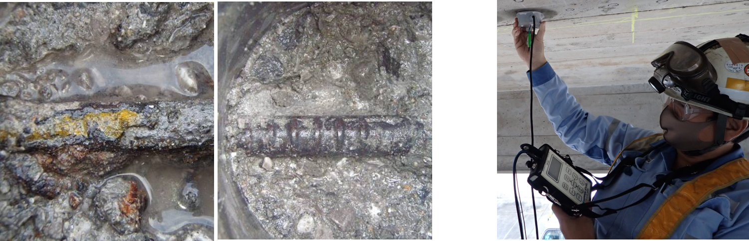 (1) 外観目視観察、ひび割れ幅測定、ファイバースコープ等による孔内観察等